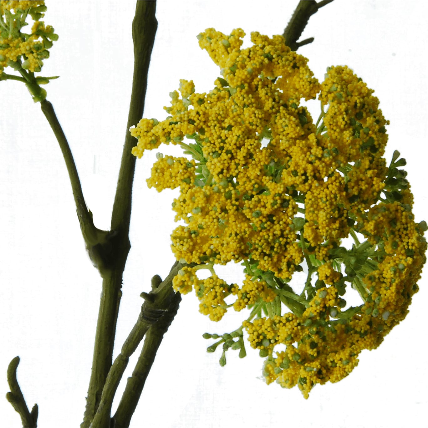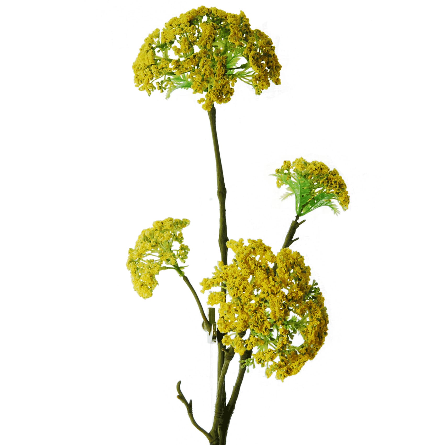 Deze Dille tak heeft een vertakte steel met schermbloemen die geel van kleur zijn.