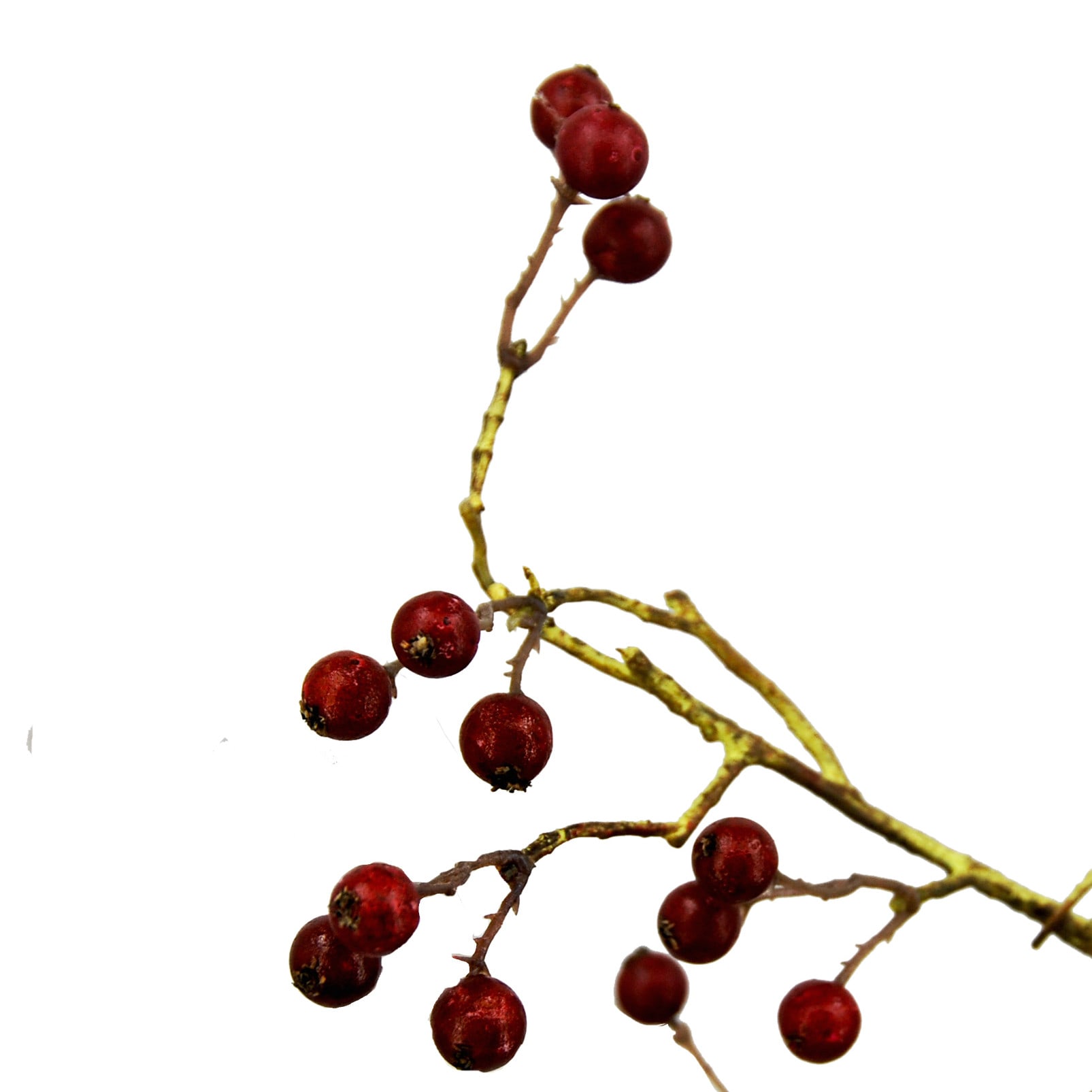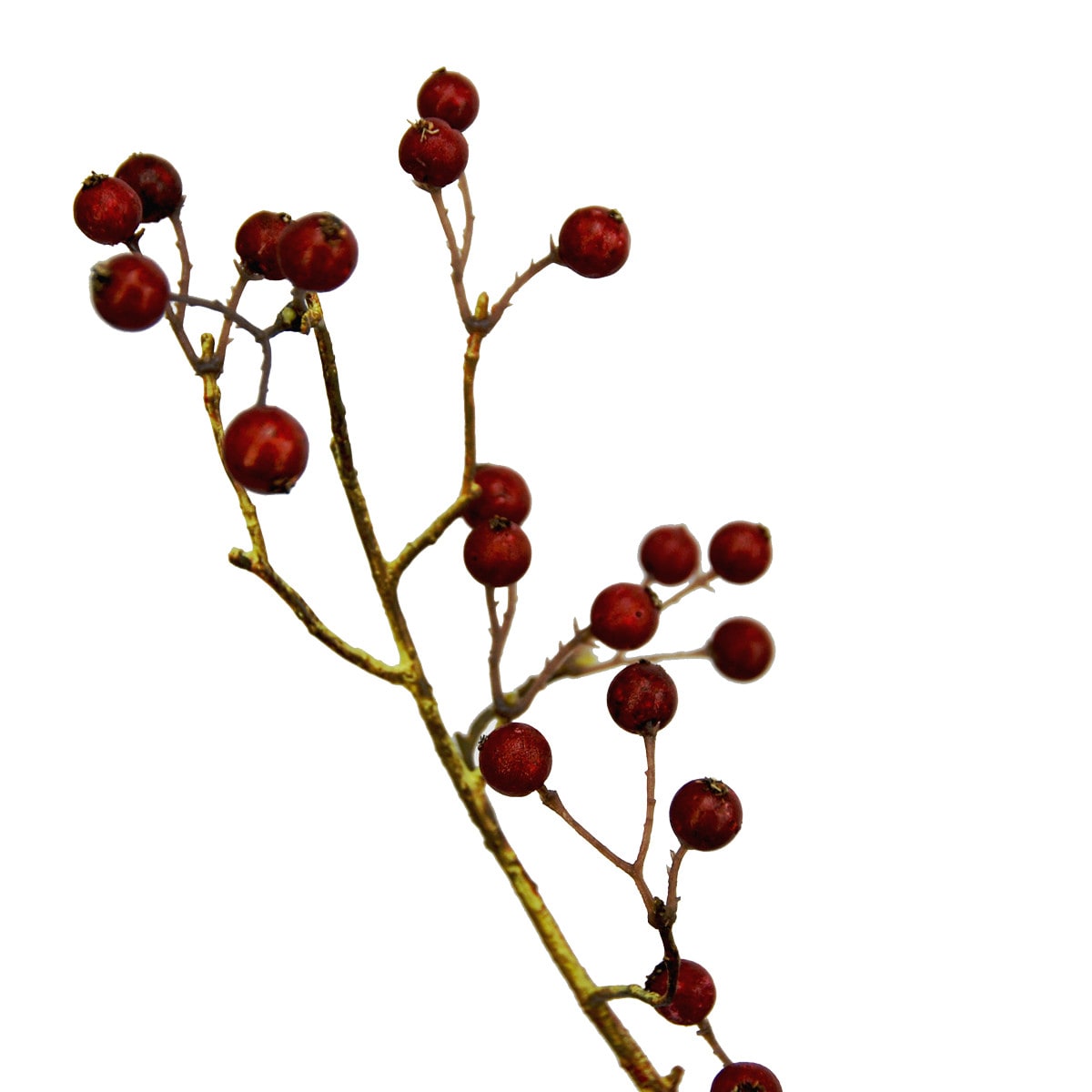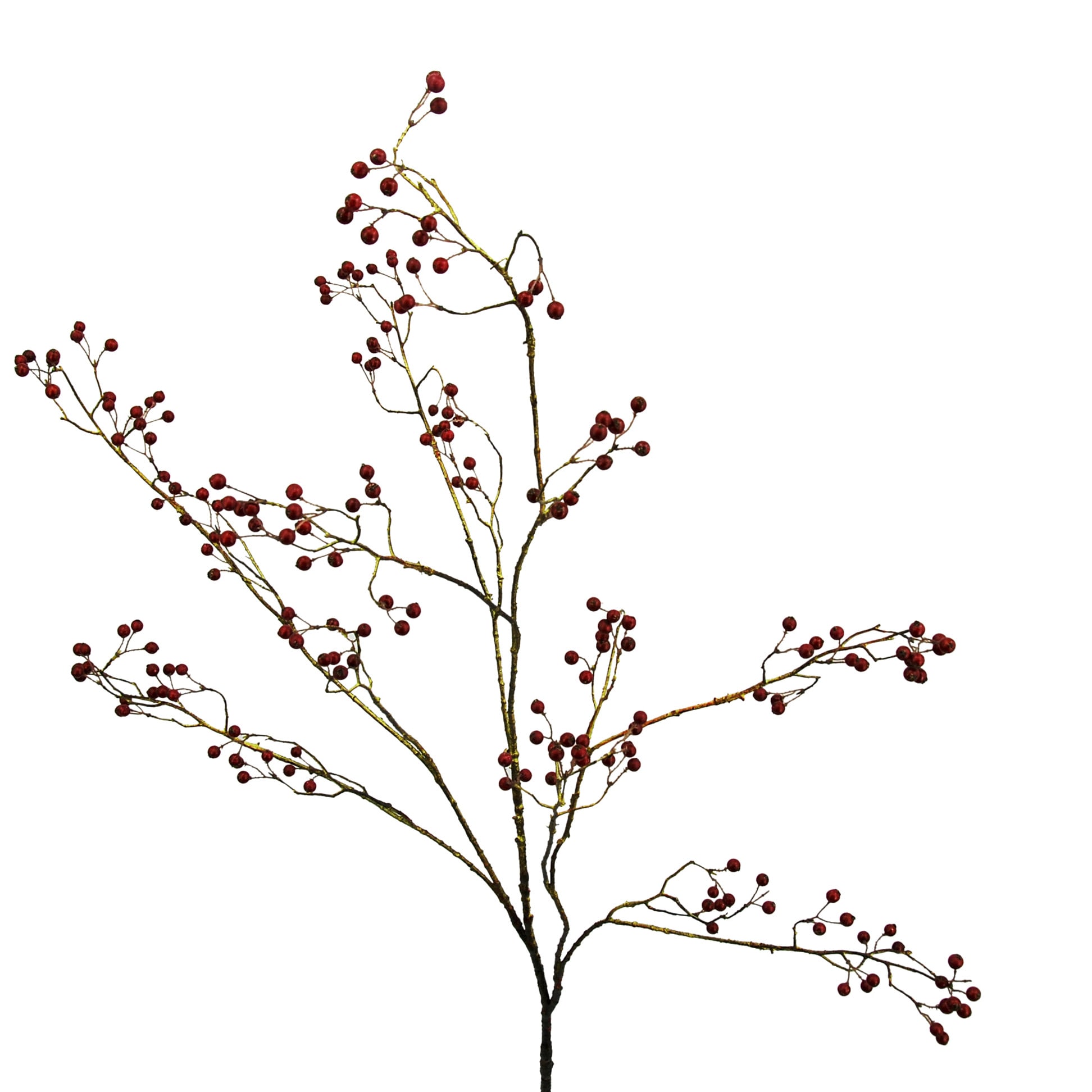 Dit is een 133 cm hoge, schitterende kunstversie van een bessentak met rode bessen