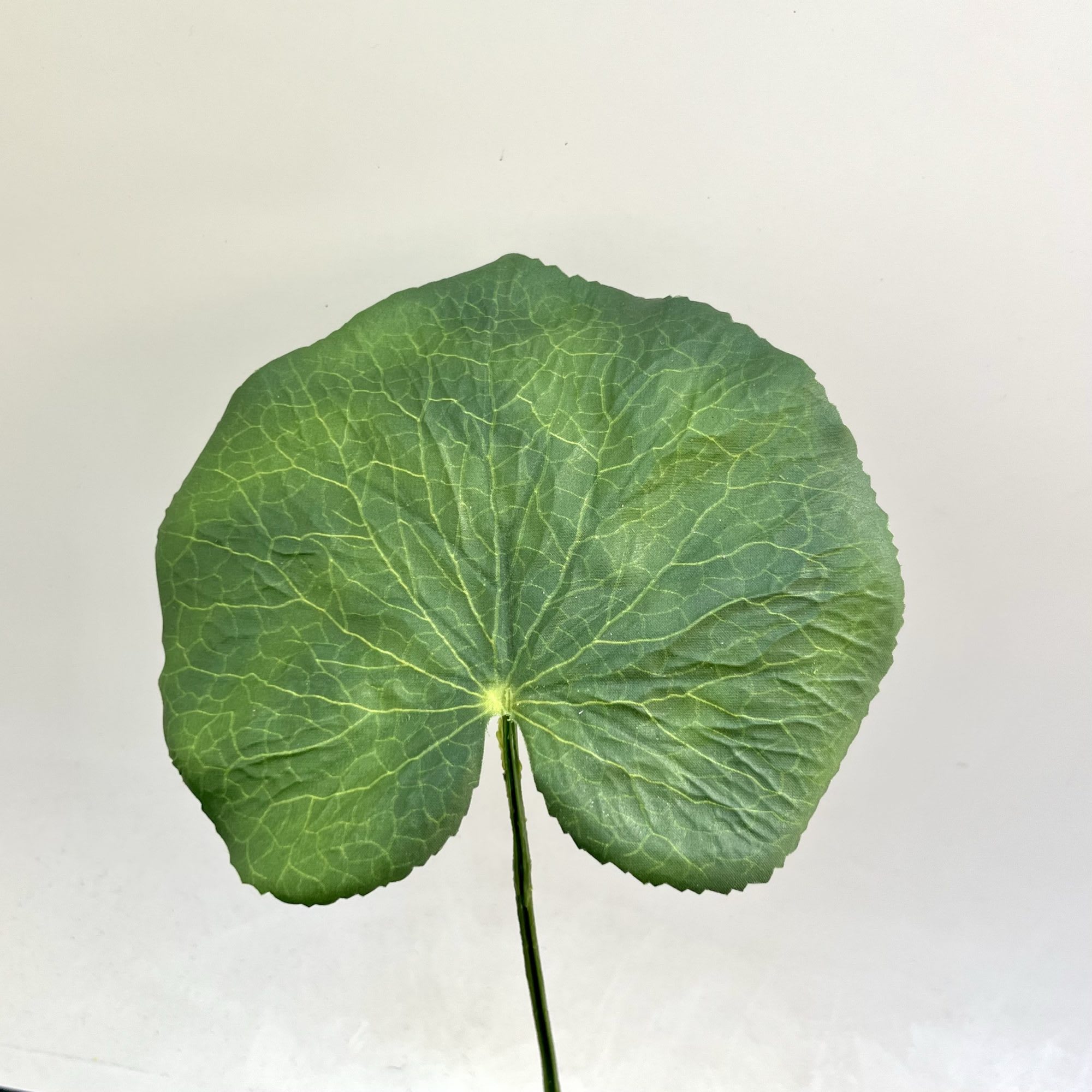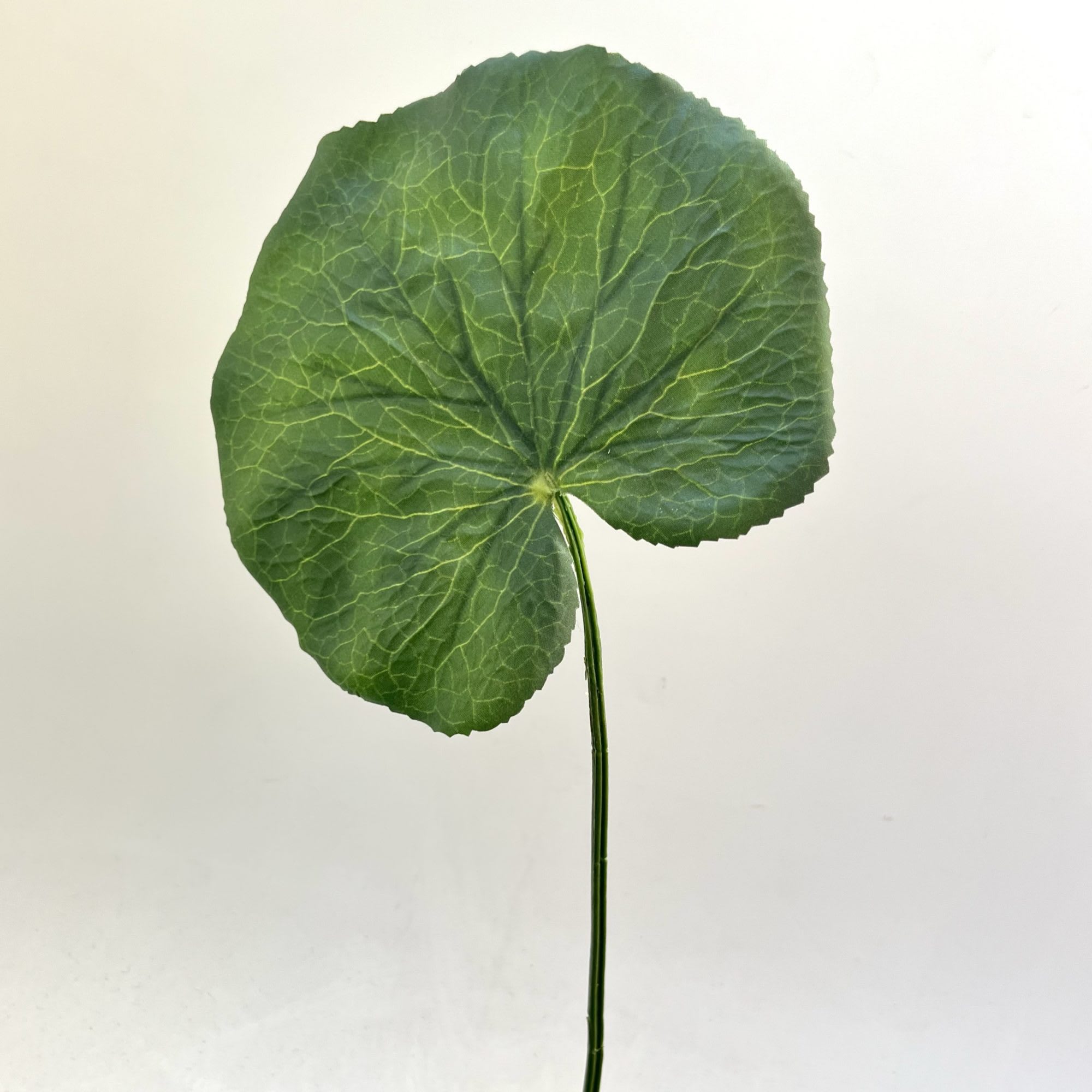 Deze kunst-galaxblad is bijzonder decoratief. Het heeft een mooi groot, groen, geaderd blad en in de stengel zit ijzerdraad zodat je’m mooi om over de rand van een vaas kunt buigen.
