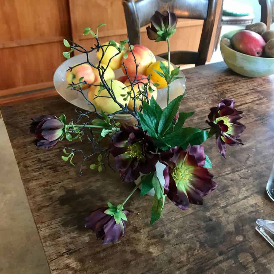 Deze kerstroos of nieskruid heeft een vertakte steel met kleinere bloemen die bordeaux rood van kleur zijn.