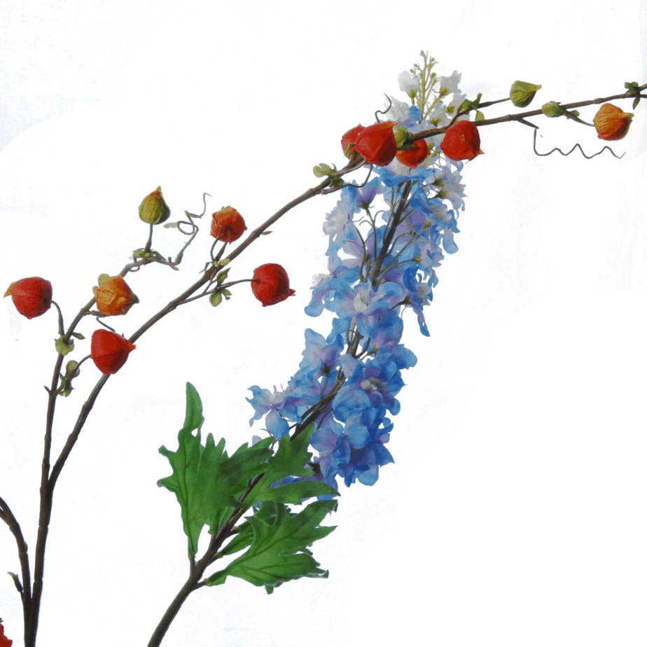 Dit is een 120 cm hoge, mooie imitatie van een Lampion tak. Deze zijdebloem wordt ook wel ‘physalis of lantaarntak’ genoemd.