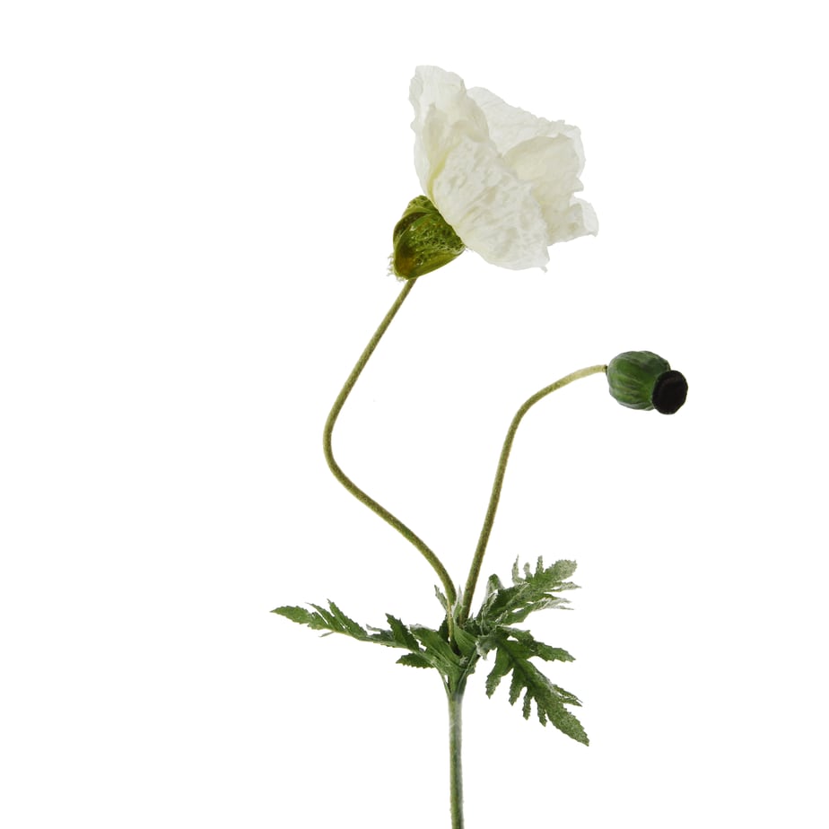 Dit is een 87 cm hoge, schitterende kunstversie van een Grote papaver met een knop. Deze zijden bloem wordt ook wel ‘papaver’ genoemd.