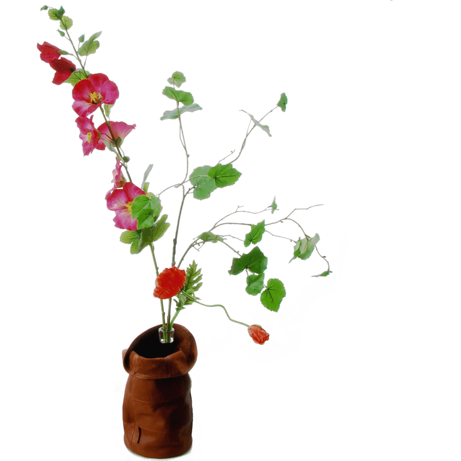 We hebben ook wat afbeeldingen van de leren tas om een grotere, hogere vaas. Met een diameter van 24cm past deze precies.