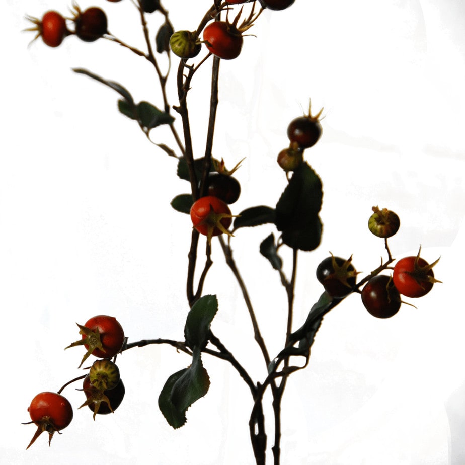Dit is een 106 cm hoge, schitterende imitatie van een Tak met rozenbottels.