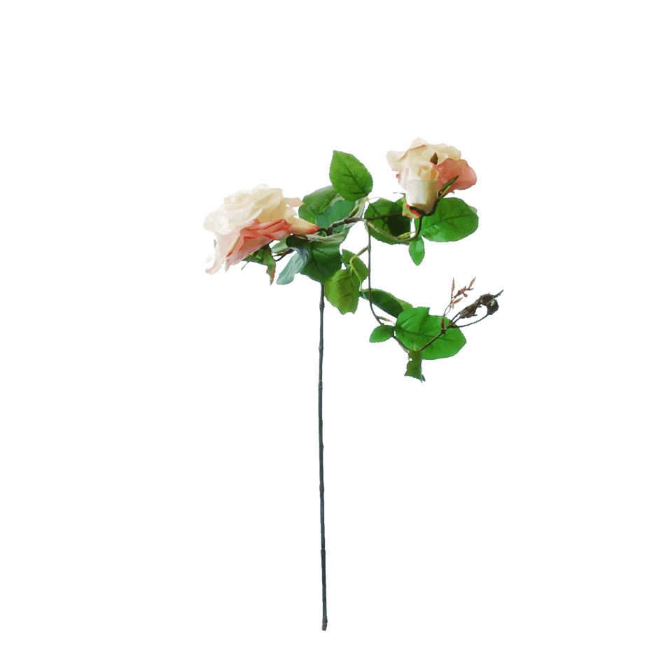 Dit is een 90 cm hoge, prachtige imitatie van een Rozen tak met 2 rozen en knoppen.
