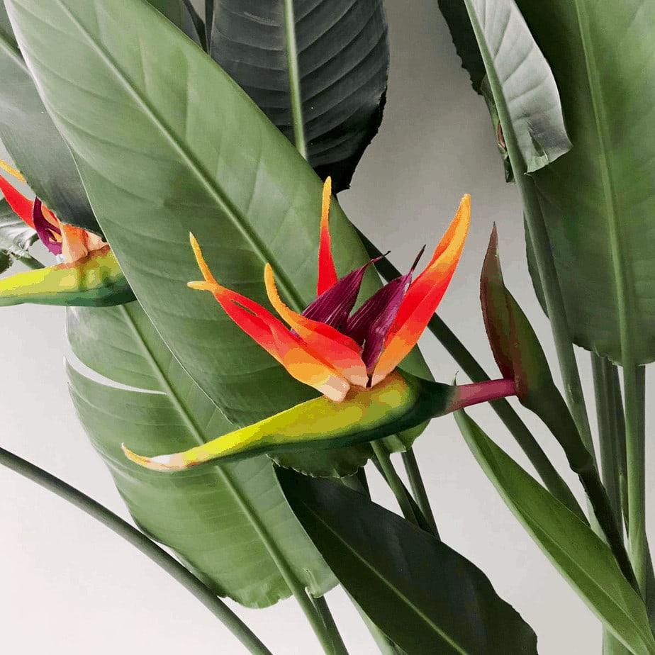 Dit is een 80 cm hoge, prachtige imitatie van een Strelitzia. Deze kunstbloem wordt ook wel ‘Paradijsvogelbloem’ genoemd.