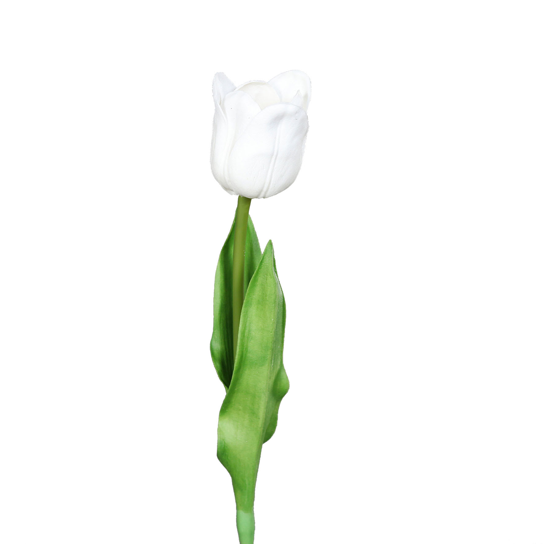 Onze Foam Tulp, 60 cm hoog, in een spier witte tint. Deze kunstversie van de tulp is schitterend in een grote bos bloemen of in combinatie met een heleboel andere tulpen.