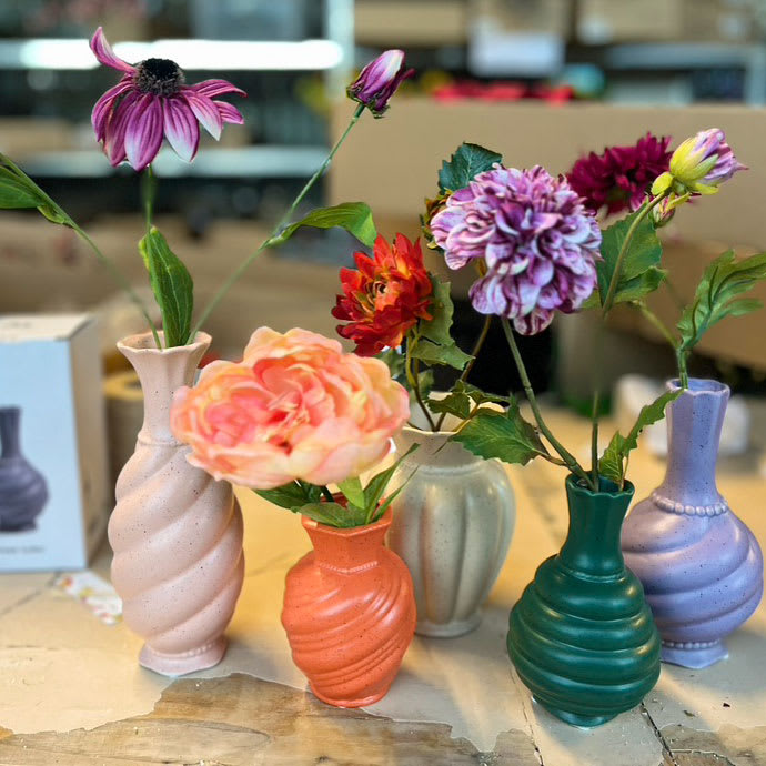 Tudor vazen ​​kenmerken zich door klassieke vormen met een moderne twist. De vintage geïnspireerde lijnen contrasteren mooi met het eigentijdse kleurenpalet. Combineer de verschillende variaties om een ​​boeiende compositie te creëren.