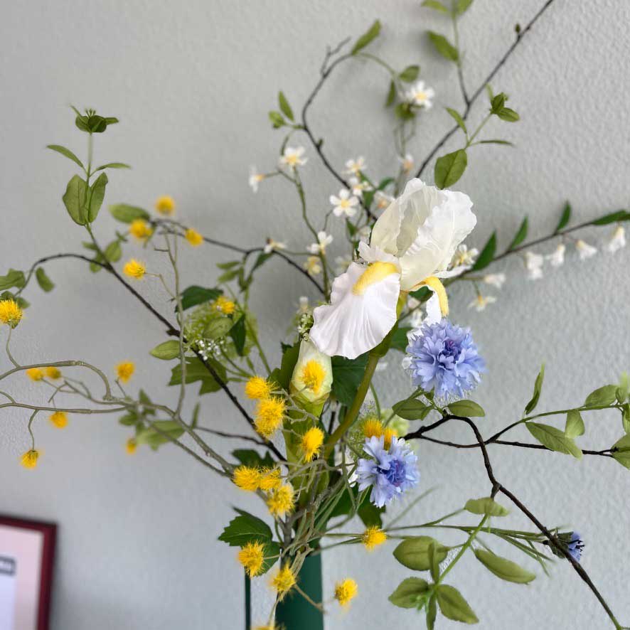 Zijden bloemen boeket #134 | 129 cm | L | wit geel blauw